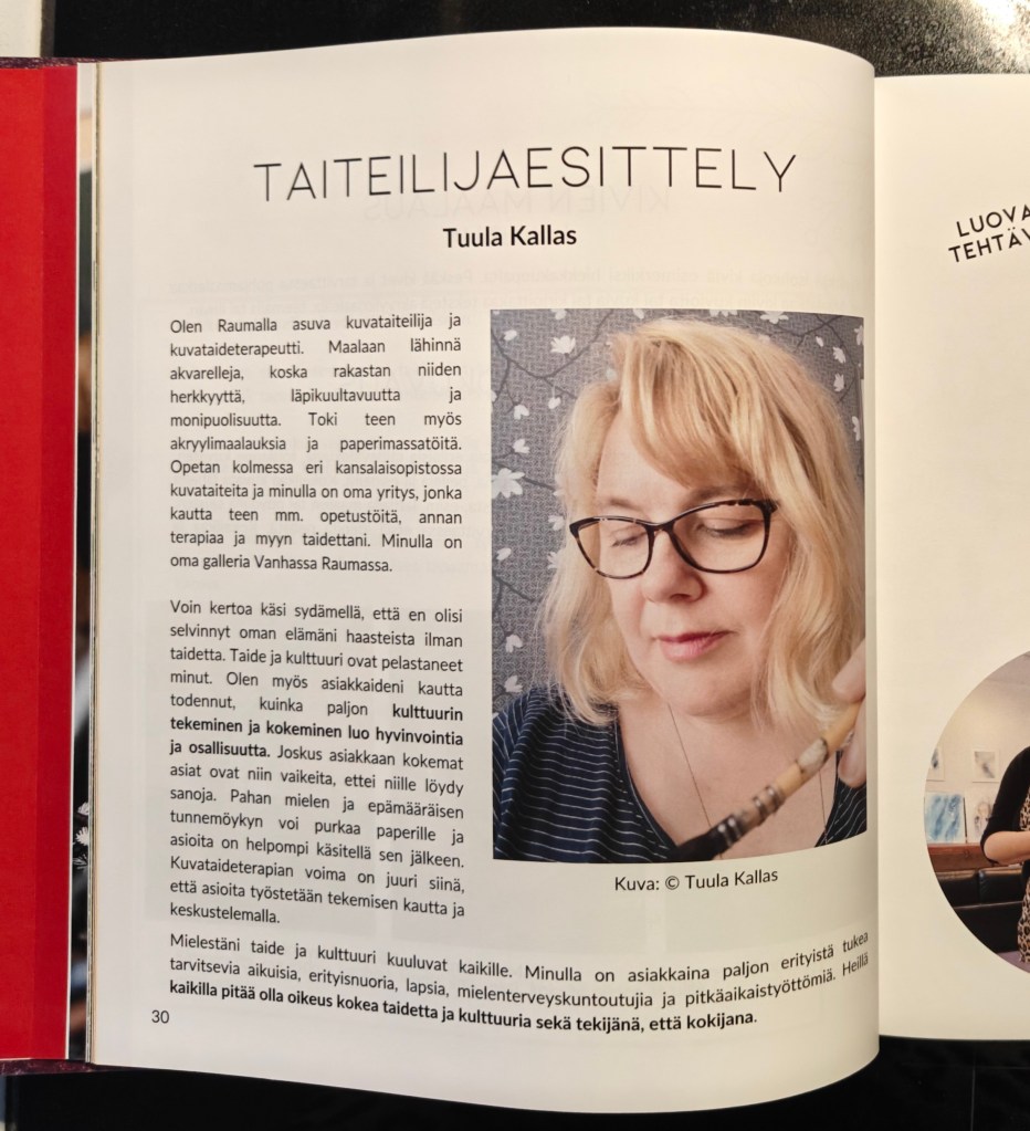 • Taiteilijaesittely ”Minä olen! Hyvinvointia kulttuurin keinoin” -kirjassa: